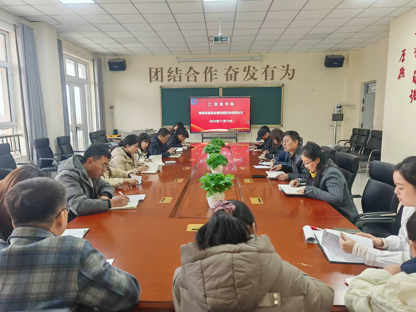 11月19日,口腔醫(yī)學(xué)院召開了輔導(dǎo)員座談會暨校園安全檢查會議。會上傳達(dá)省教育廳和學(xué)校關(guān)于校園安全工作的會議精神,會議由學(xué)院黨總支書記王祖華主持,全體專兼職輔導(dǎo)員及2024屆畢業(yè)班輔導(dǎo)員參加了會議。