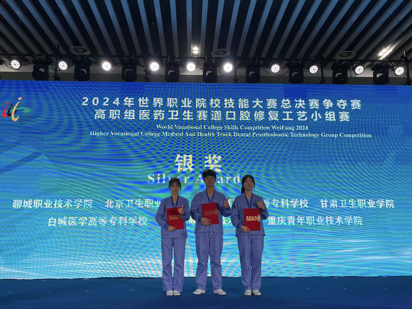 我校在2024年世界職業(yè)院校技能大賽總決賽醫(yī)藥衛(wèi)生賽道三(口腔修復工藝賽項)爭奪賽中榮獲銀獎