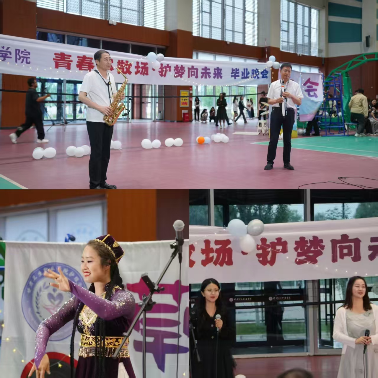 晚會分為三個篇章。第一篇章“青矜逐夢·韶光剪影”,蘭謠樂團(tuán)節(jié)奏強(qiáng)烈的搖滾、金屬類曲目燃爆現(xiàn)場;蔡潤喜、韓忠兩位老師以薩克斯演繹《小蘋果》,別出心裁,賦予熟悉旋律優(yōu)雅與熱情;李甜等同學(xué)演唱的《若是月亮還沒來》,歌聲空靈,唱出青春的憧憬;祁曉陽等同學(xué)的《非遺舞獅》將畢業(yè)晚會推向高潮。第二篇章“櫛風(fēng)沐雨·薪火相承”,舞蹈隊的古典舞《鴛鴦戲》如詩意畫卷,盡顯古代愛情浪漫與傳統(tǒng)文化魅力;何若君、俞躍老師高歌《愛在天地間》,傳遞護(hù)理工作者的無私大愛;安妮兒其其格老師帶來熱情奔放的維吾爾族舞蹈《木卡姆-朱拉》,舞步輕盈,民族風(fēng)情滿溢。第三篇章“揚(yáng)帆逐浪·星河共赴”,王申祥同學(xué)獻(xiàn)上秦腔唱段《金沙灘》;安秀虎同學(xué)演唱的《我們的時光》、濮夢琪與蔡丹丹演唱的《同花順》,為晚會增添溫馨與歡樂氛圍。晚會尾聲,全體師生合唱《起風(fēng)了》,天意樂隊深情的歌聲飽含著對校園的不舍與未來的憧憬。