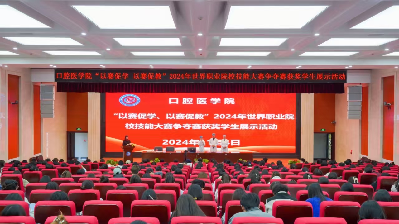 11 月 4 日中午,口腔醫(yī)學(xué)院在1 號樓學(xué)術(shù)報告廳舉辦2024年世界職業(yè)院校技能大賽口腔修復(fù)工藝賽項的獲獎選手展示交流活動。活動由口腔醫(yī)學(xué)院副院長王琳主持,全體專兼職教師以及學(xué)生代表參與了此次活動。