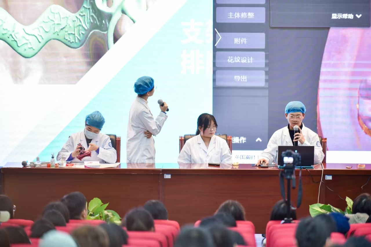 會議第一項,獲獎選手模擬展示了整個參賽過程。演示過程中,選手們?nèi)硇耐度耄浞终宫F(xiàn)出卓越精湛的技藝。從模型設(shè)計至修復(fù)過程的每一環(huán)節(jié),井然有序、精準(zhǔn)無誤。無論是對數(shù)字化設(shè)計軟件的運用,還是修復(fù)體的制作,均展現(xiàn)出較高的專業(yè)水準(zhǔn)。