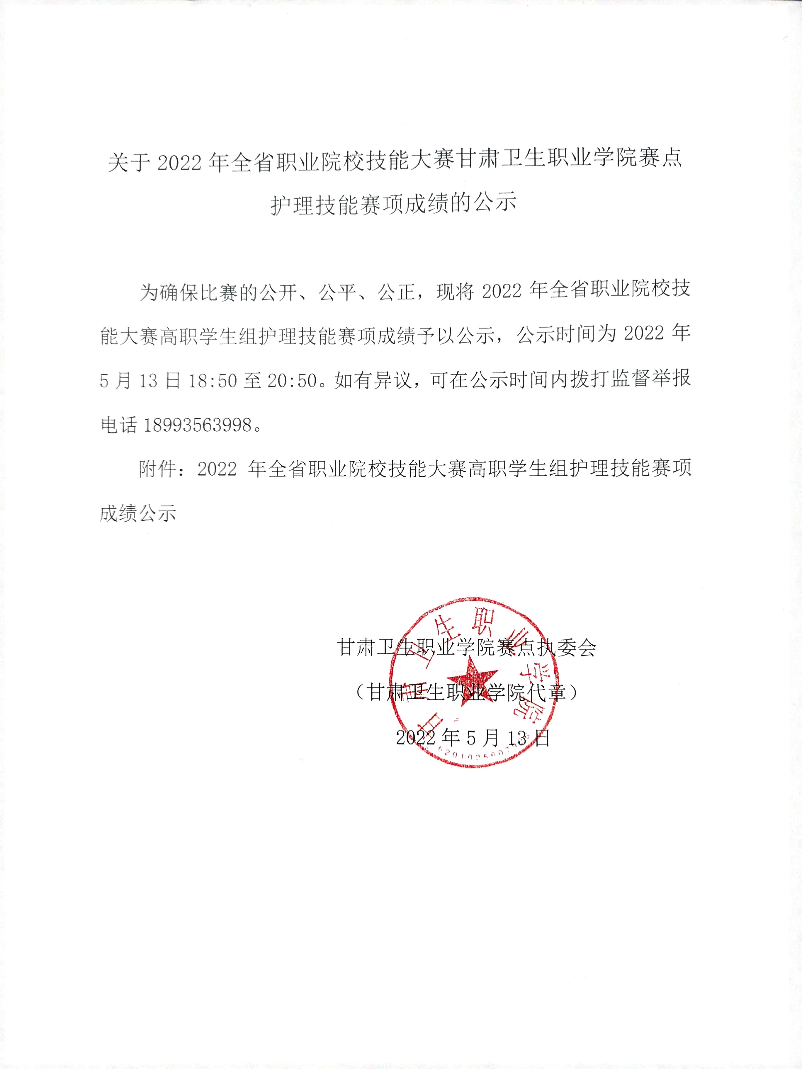 關(guān)于2022年全省職業(yè)院校技能大賽甘肅衛(wèi)生職業(yè)學(xué)院賽點護(hù)理技能賽項成績的公示