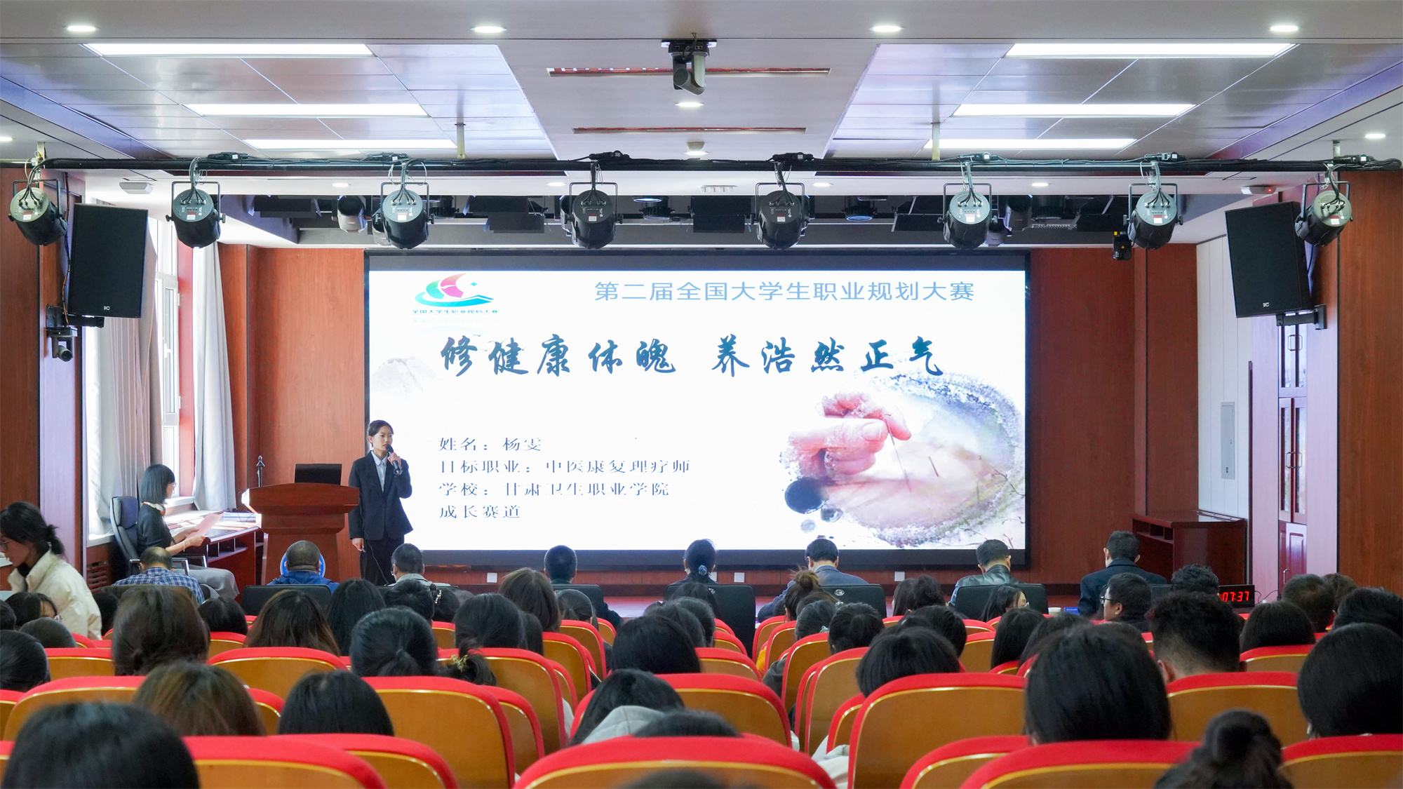 本次比賽活動自8月份啟動以來,經(jīng)過班級報名、院級初賽、復(fù)賽層層選拔,共有35名選手入圍校級決賽。校級決賽參照首屆全國大學(xué)生職業(yè)規(guī)劃大賽形式進(jìn)行,分成長賽道和就業(yè)賽道兩個賽道比賽,每個賽道設(shè)置主題陳述和評委提問兩個環(huán)節(jié)。各位選手結(jié)合專業(yè)優(yōu)勢和興趣愛好,從自我認(rèn)知、崗位分析、求職規(guī)劃與實施路徑等方面對自己的職業(yè)實現(xiàn)進(jìn)行全面展示。評委們結(jié)合選手現(xiàn)場表現(xiàn)、陳述內(nèi)容進(jìn)行提問。