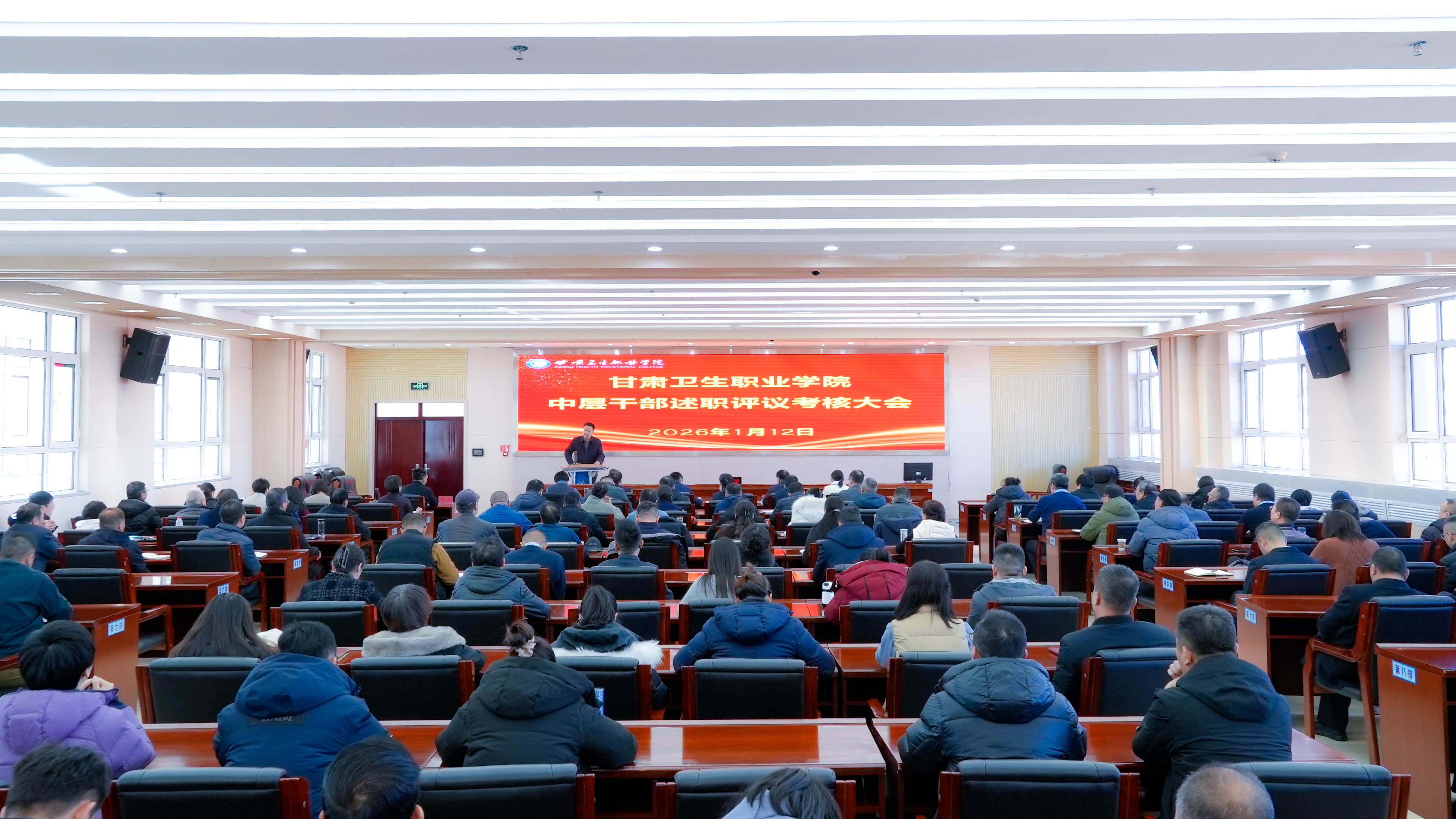 1月12日,學院在勤篤樓8樓會議室召開學院2025年度中層干部述職評議考核大會,學院黨委書記令軍輝,學院黨委副書記、院長王建成,副院長高博、黨純?nèi)省堒姌s、邱文云、李力、楊頻出席會議,全體中層干部及教職工代表參加會議。