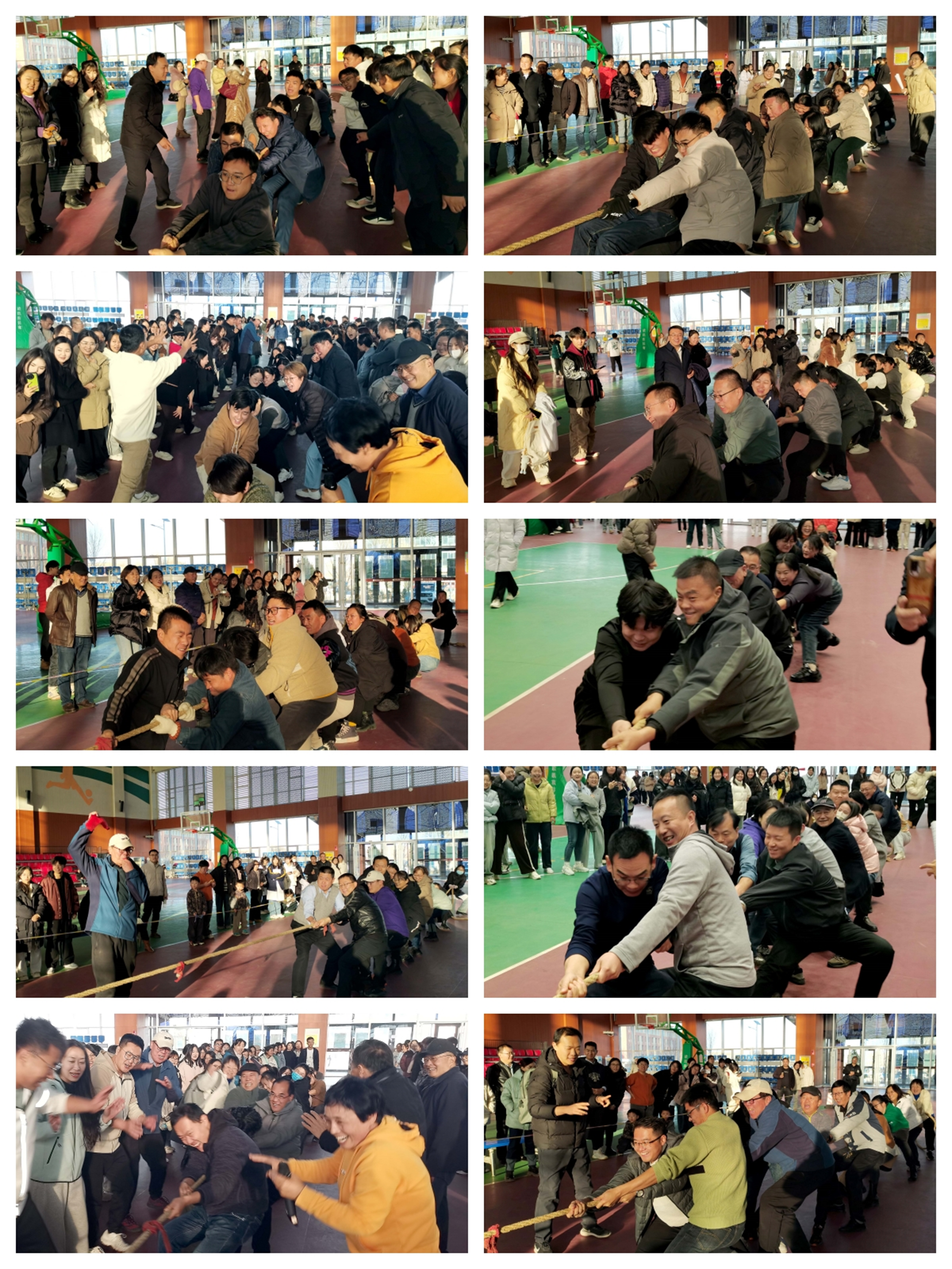 本次拔河比賽,以工會小組為單位組織參賽,每個工會小組組織1個參賽隊伍,共有來自10個工會小組的200多名教職工參加了比賽。