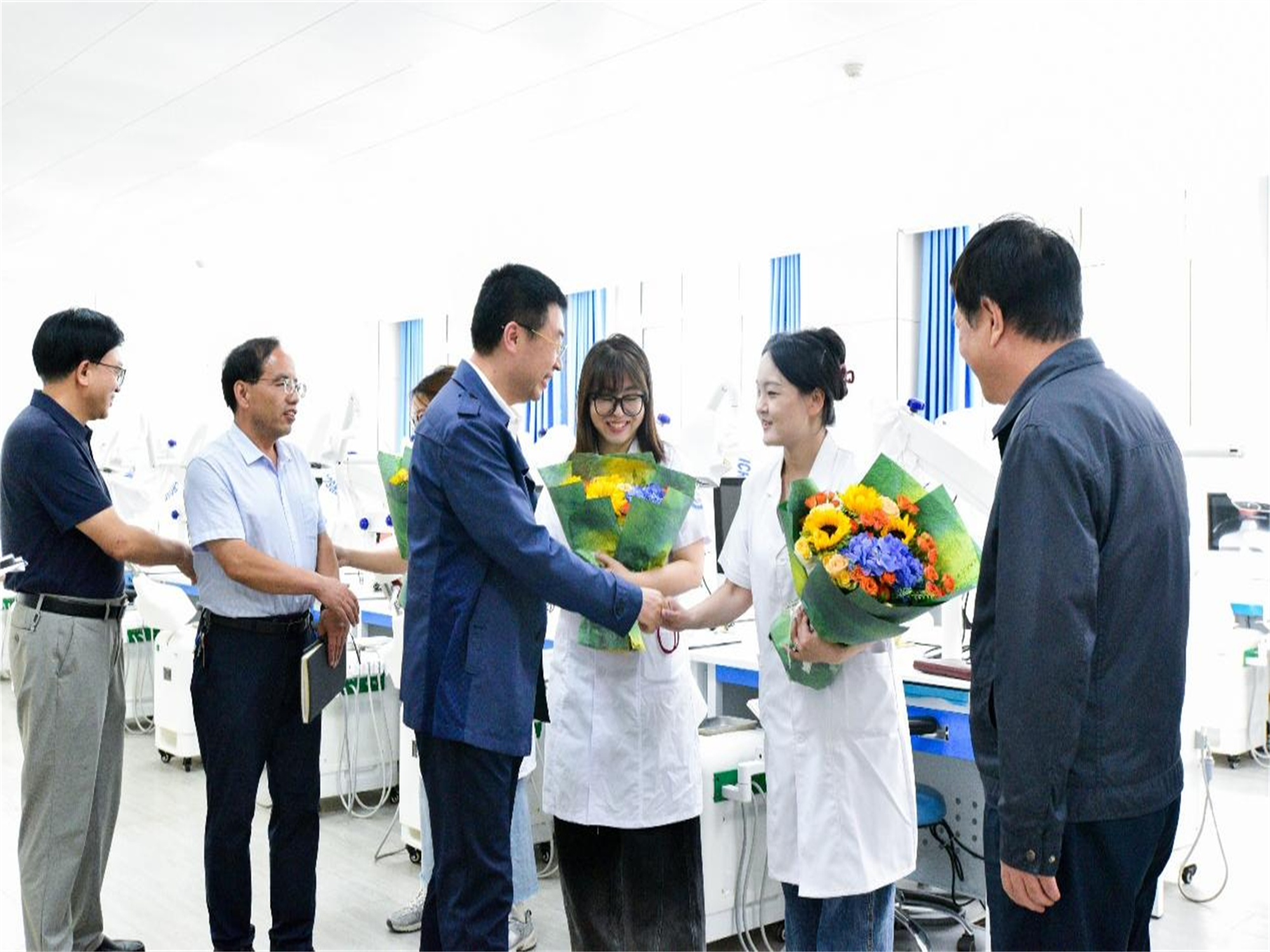 院領(lǐng)導(dǎo)與教師代表們深入交流,詳細了解他們的教學(xué)工作、生活情況以及在教育教學(xué)中遇到的困難和需求,充分肯定他們以生為本、潛心育人的高尚情操,感謝他們?yōu)閷W(xué)校發(fā)展和人才培養(yǎng)所做出的貢獻,并鼓勵教師們在今后的工作中繼續(xù)努力,不斷提升教育教學(xué)質(zhì)量,培養(yǎng)更多高素質(zhì)醫(yī)學(xué)技能人才。