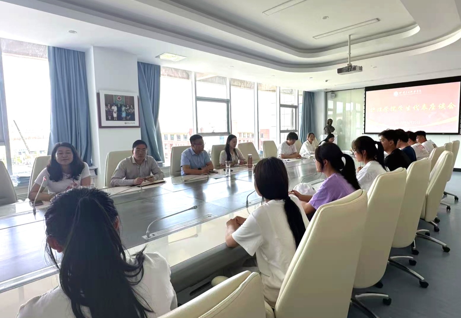 為鑄牢中華民族共同體意識(shí),深入了解學(xué)校少數(shù)民族學(xué)生的學(xué)習(xí)生活狀況與思想動(dòng)態(tài),傾聽學(xué)生心聲,回應(yīng)學(xué)生關(guān)切問題,進(jìn)一步提升學(xué)生管理服務(wù)水平,5月20日中午,護(hù)理學(xué)院在南丁格爾會(huì)議室召開民族學(xué)生代表座談會(huì)。學(xué)院班子成員出席會(huì)議,黨建辦公室、學(xué)生工作辦公室、團(tuán)委等部門老師及團(tuán)學(xué)干部和各班民族學(xué)生代表參加會(huì)議。