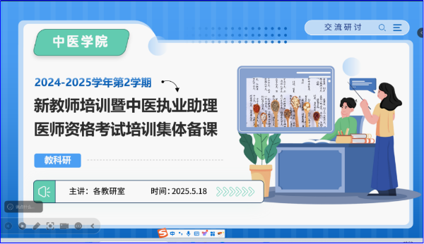 為提升中醫(yī)學(xué)院學(xué)生執(zhí)業(yè)考試過(guò)關(guān)率,提高課堂教學(xué)質(zhì)量,培育優(yōu)質(zhì)師資隊(duì)伍,5月18日晚,中醫(yī)學(xué)院依托騰訊會(huì)議平臺(tái),開展新教師培訓(xùn)及中醫(yī)執(zhí)業(yè)助理醫(yī)師資格考試輔導(dǎo)聯(lián)合備課活動(dòng)。本次活動(dòng)邀請(qǐng)學(xué)院領(lǐng)導(dǎo)、各教研室專業(yè)教師,通過(guò)數(shù)字化手段突破時(shí)空限制,為新教師成長(zhǎng)、畢業(yè)生備考輔導(dǎo)和即將啟動(dòng)的鄉(xiāng)村醫(yī)生培訓(xùn)工作奠定堅(jiān)實(shí)基礎(chǔ)。