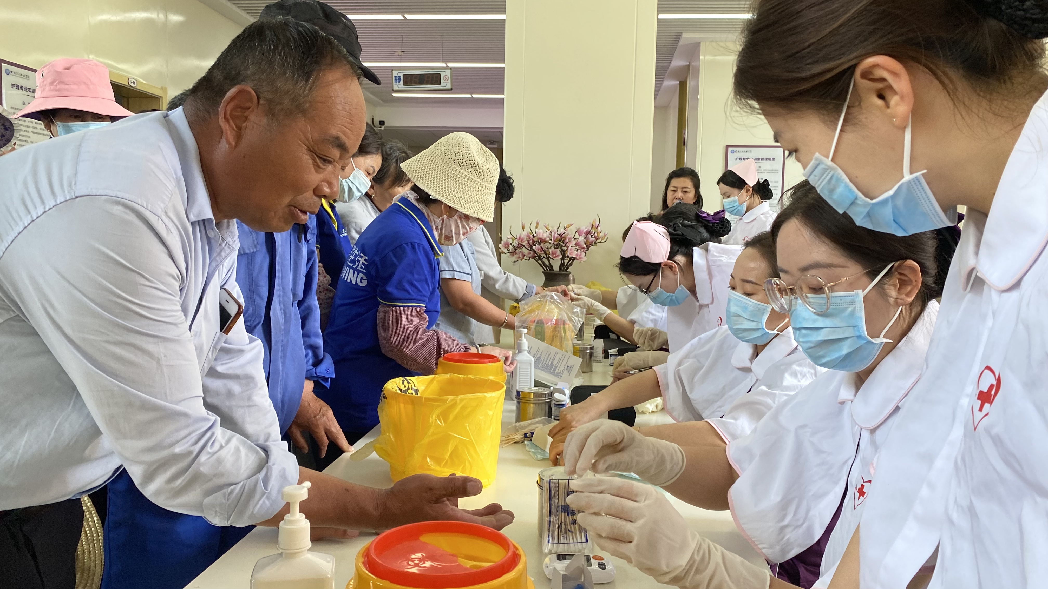 6月20日下午,護(hù)理學(xué)院中國(guó)南丁格爾志愿服務(wù)隊(duì)431分隊(duì)組織了一場(chǎng)主題為“關(guān)愛(ài)校園守護(hù)者,健康同行護(hù)未來(lái)”的血糖檢測(cè)活動(dòng)。護(hù)理實(shí)訓(xùn)教師與志愿者們攜手,為校園保潔員、保安人員及園藝工人提供專業(yè)血糖檢測(cè)服務(wù),并普及健康知識(shí),增強(qiáng)其慢性疾病預(yù)防意識(shí)。活動(dòng)現(xiàn)場(chǎng)秩序井然,教師和志愿者們以耐心細(xì)致的服務(wù)贏得廣泛贊譽(yù)。