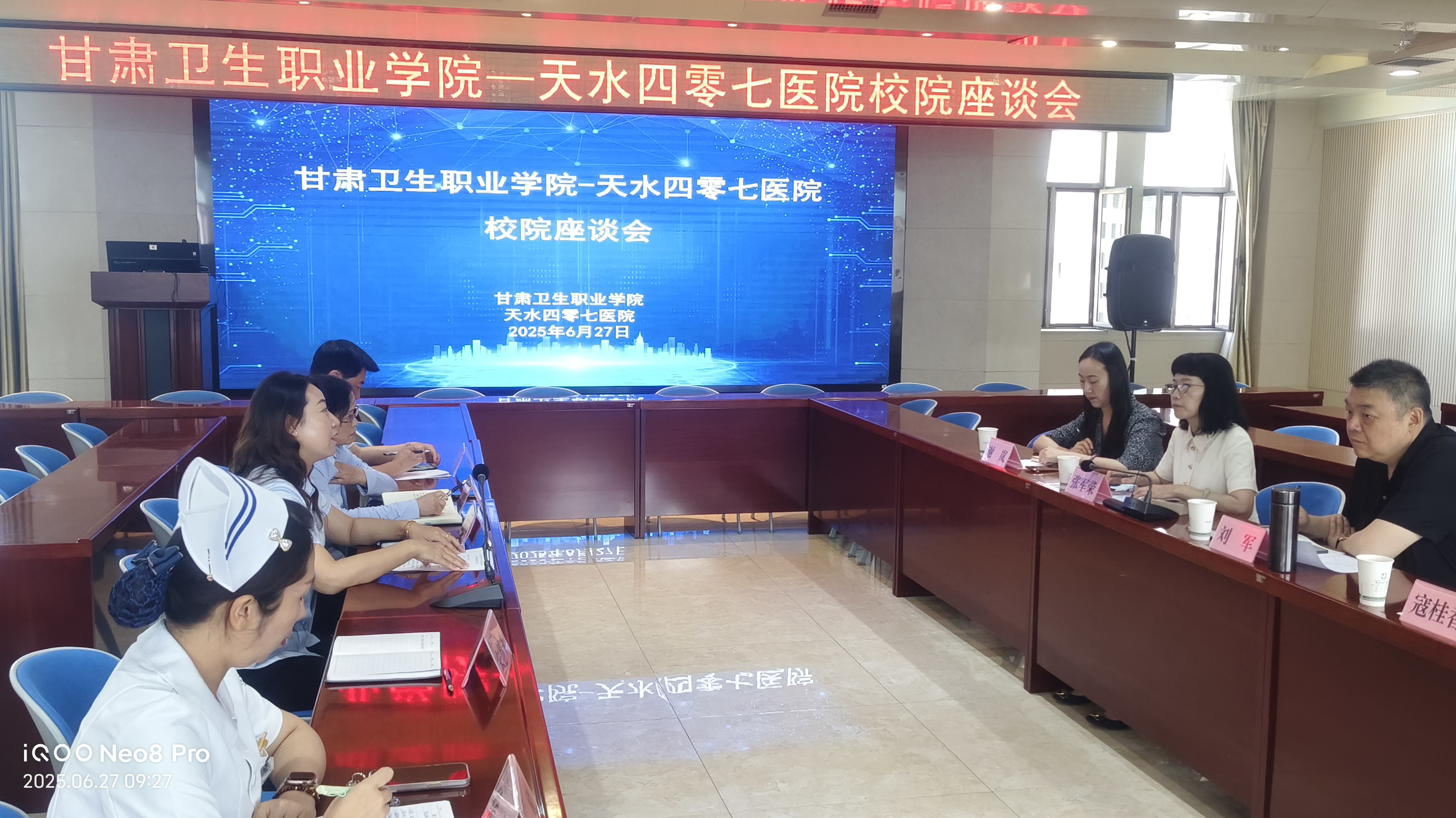 6月27日,學(xué)校領(lǐng)導(dǎo)率隊(duì)首次回訪天水四零七醫(yī)院,產(chǎn)業(yè)學(xué)院管理中心、臨床醫(yī)學(xué)院和護(hù)理學(xué)院等部門(學(xué)院)負(fù)責(zé)人參加此次活動,校院雙方召開專項(xiàng)推進(jìn)會并組織學(xué)生座談,合力推動產(chǎn)業(yè)學(xué)院提質(zhì)增效。