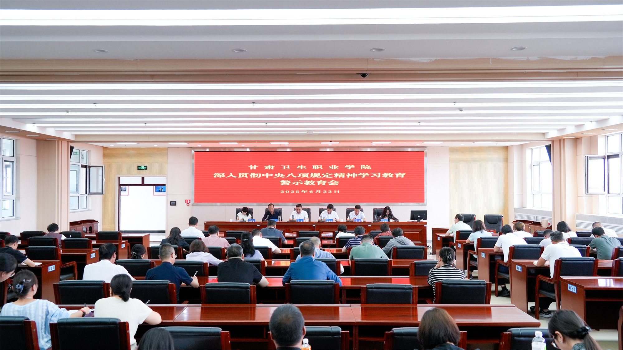 6月23日,學(xué)校召開深入貫徹中央八項(xiàng)規(guī)定精神學(xué)習(xí)教育警示教育會(huì),傳達(dá)學(xué)習(xí)省委教育工委、省教育廳黨組有關(guān)會(huì)議精神,通報(bào)近年來(lái)查處的教育系統(tǒng)違反中央八項(xiàng)規(guī)定精神典型案例,集體觀看警示教育片。黨委書記包磊主持并講話。