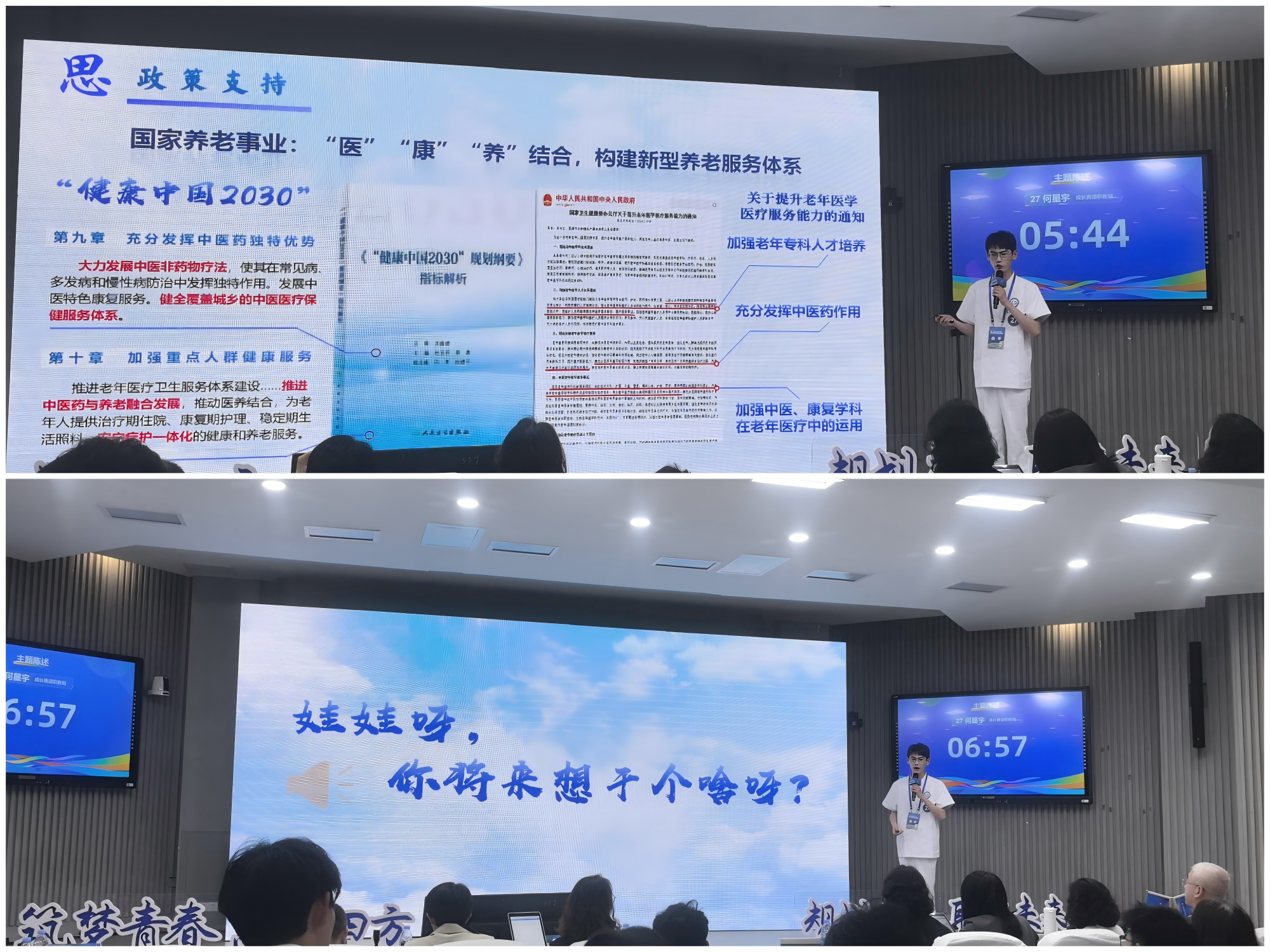 本屆大賽自2024年10月啟動(dòng)以來(lái),歷時(shí)半年吸引全國(guó)1507萬(wàn)名學(xué)生報(bào)名,覆蓋2763所高校。我校何星宇同學(xué)以省賽成長(zhǎng)賽道(職教組)金獎(jiǎng)第二名的成績(jī)代表甘肅省參加第二屆全國(guó)總決賽。總決賽中,他緊扣老齡化社會(huì)健康服務(wù)需求,以“社區(qū)中醫(yī)老年康復(fù)醫(yī)師”為職業(yè)目標(biāo),將專業(yè)特色與社區(qū)養(yǎng)老服務(wù)深度結(jié)合,展現(xiàn)出我校學(xué)子良好的專業(yè)素養(yǎng)與實(shí)踐能力,最終獲銅獎(jiǎng)。