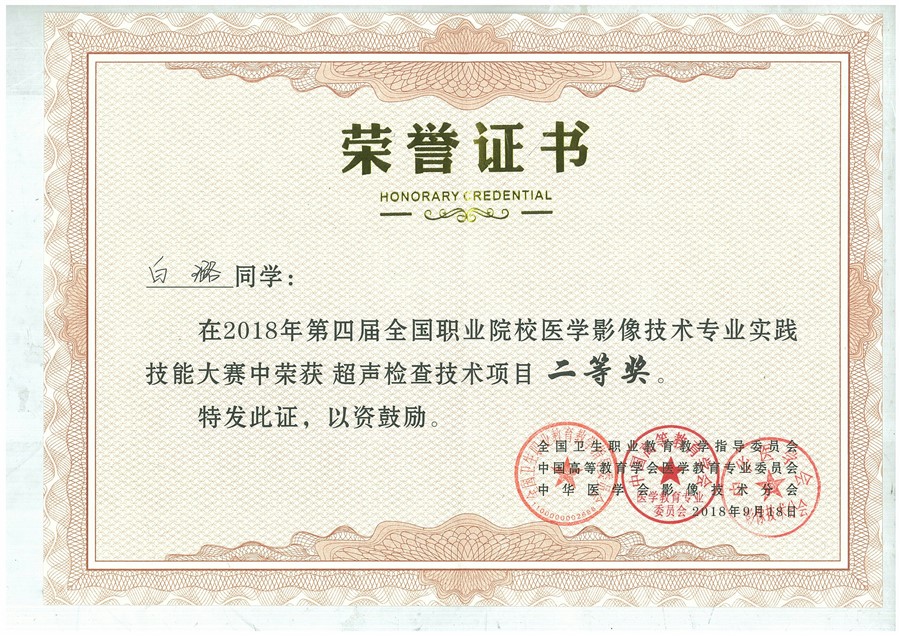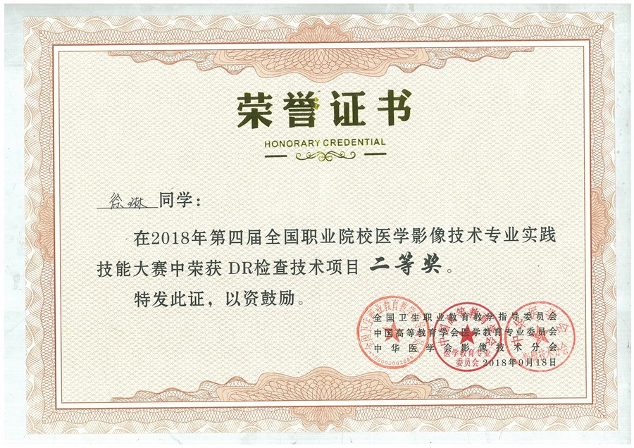 2018年9月16日—18日,第四屆“新華杯”全國(guó)職業(yè)院校醫(yī)學(xué)影像技術(shù)專(zhuān)業(yè)實(shí)踐技能大賽在山東新華醫(yī)療器械股份有限公司舉行。本次大賽由全國(guó)衛(wèi)生職業(yè)教育教學(xué)指導(dǎo)委員會(huì)與全國(guó)高等教育學(xué)會(huì)醫(yī)學(xué)分會(huì)主辦,中華醫(yī)學(xué)會(huì)影像技術(shù)分會(huì)協(xié)辦。來(lái)自全國(guó)50所高職高專(zhuān)院校的200名選手參賽。經(jīng)過(guò)激烈角逐,我校代表隊(duì)榮獲團(tuán)體三等獎(jiǎng),參賽選手白璐榮獲超聲項(xiàng)目二等獎(jiǎng),徐琳榮獲DR項(xiàng)目二等獎(jiǎng),王喜珠榮獲CT項(xiàng)目三等獎(jiǎng)。
