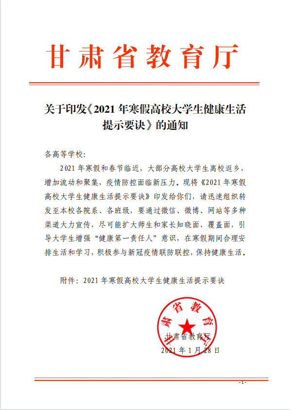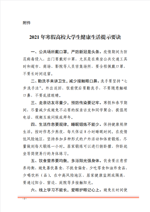 關(guān)于印發(fā)《2021年寒假高校大學(xué)生健康生活提示要訣》的通知