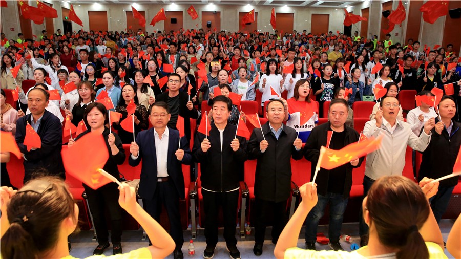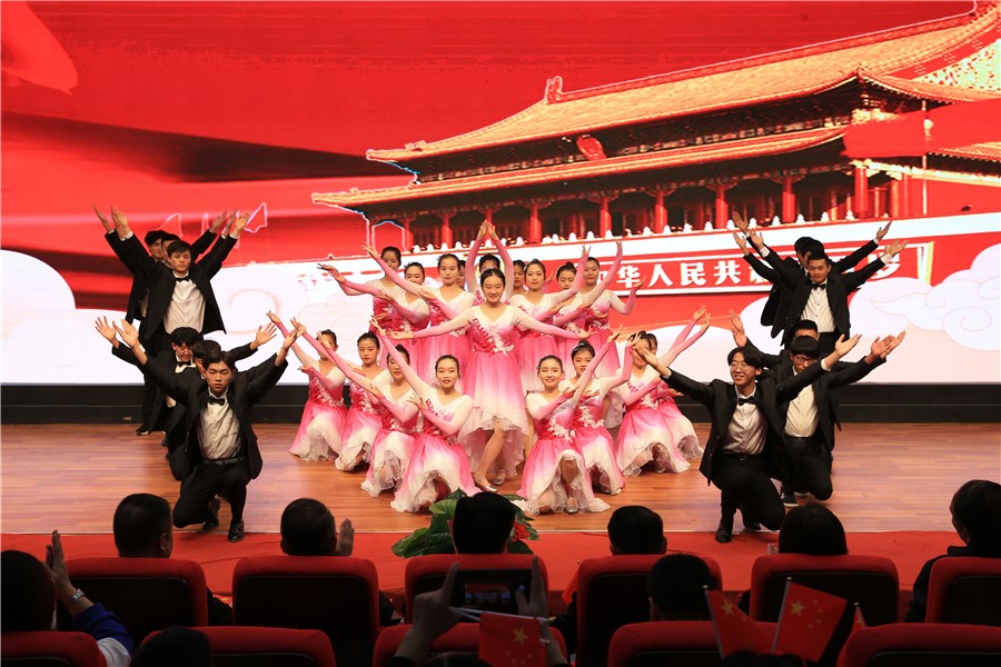 乾坤飛轉(zhuǎn)逢盛世,舉國歡慶齊歡暢。為熱烈慶祝中華人民共和國成立70周年,表達(dá)全校師生對偉大祖國的深深祝福,9月27日晚,由校團(tuán)委主辦的“青春放歌·筑夢中華”慶祝中華人民共和國成立七十周年文藝晚會在一號教學(xué)樓報告廳舉行。校黨委書記姜德民、副校長康逢民、畢效武、黃剛,各處室、二級學(xué)院負(fù)責(zé)人及師生代表近500人觀看了此次演出。