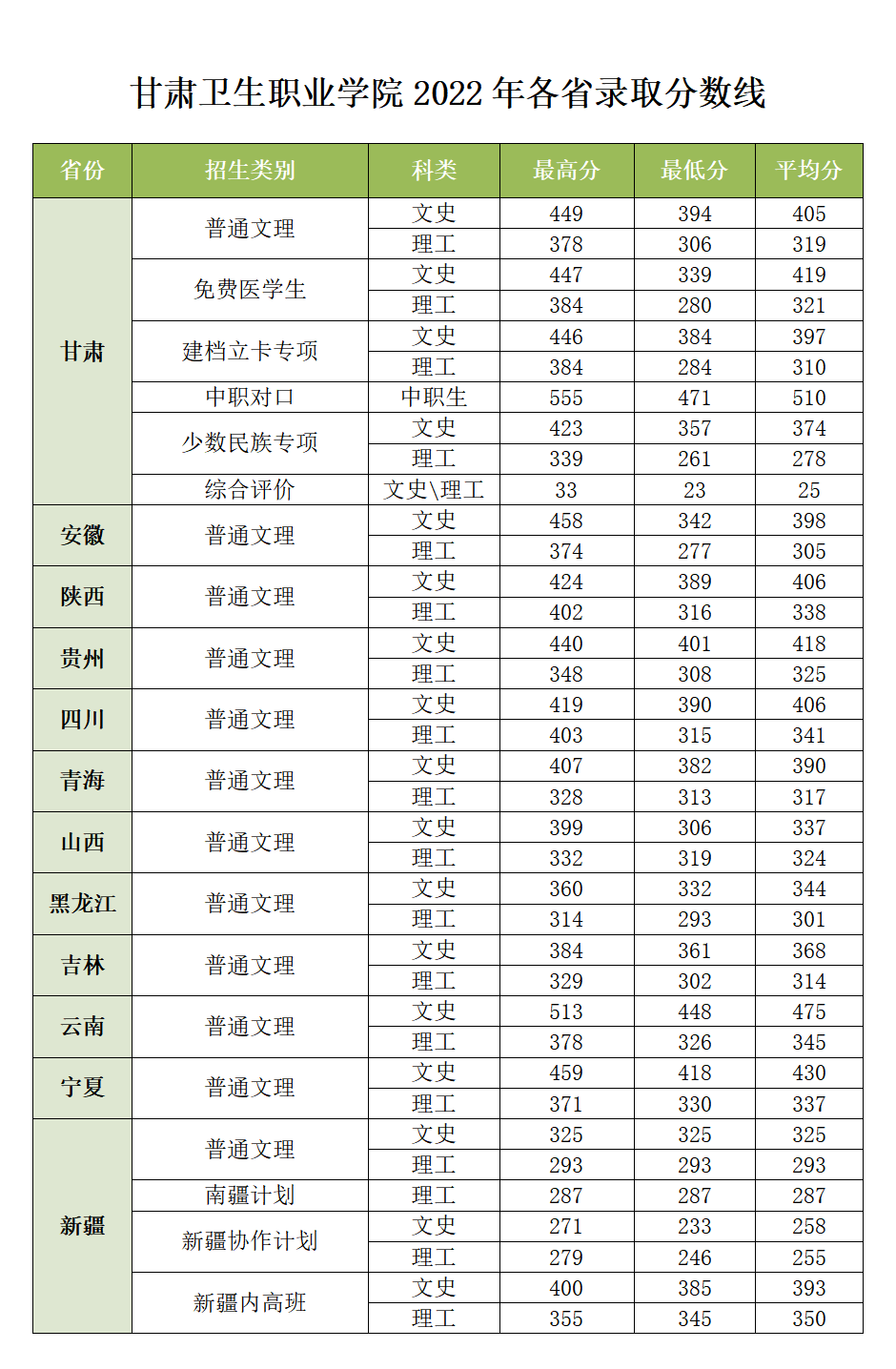 甘肅衛(wèi)生職業(yè)學(xué)院2019-2021年招生錄取分?jǐn)?shù)發(fā)布時間:2022-06-15